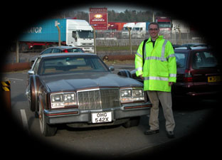 Coming Soon! Tobin's livin' it up in the UK with his "High Vis" jacket and this stretched Buick Riviera, previously owned by Marvin Gaye! Come back soon for a full report and photos from Felixstowe, Hull, and other notable British destinations! For now, check out details from his visit to the historic auto racing circuit at Brooklands in Weybridge! |